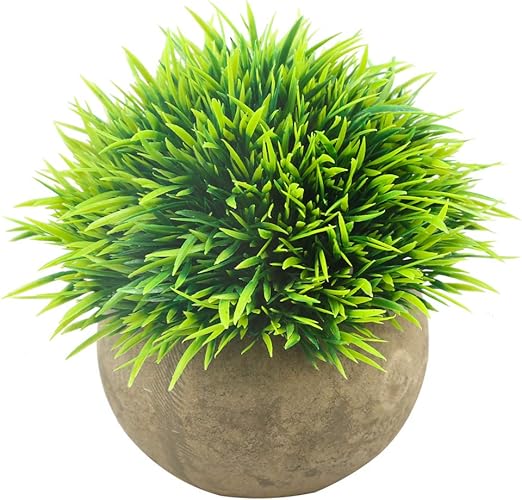 Coolmade 2 Pack Artificial Potted Green Grass Artificial Flowers