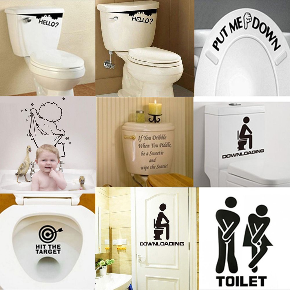 Home Bathroom Decor Art Funny Wall Door Toilet Seat Lid Sticker