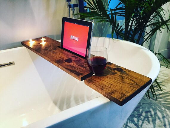 Bath Tray Bathroom Decor Bath Caddy Wine Glass Rack Ipad Etsy