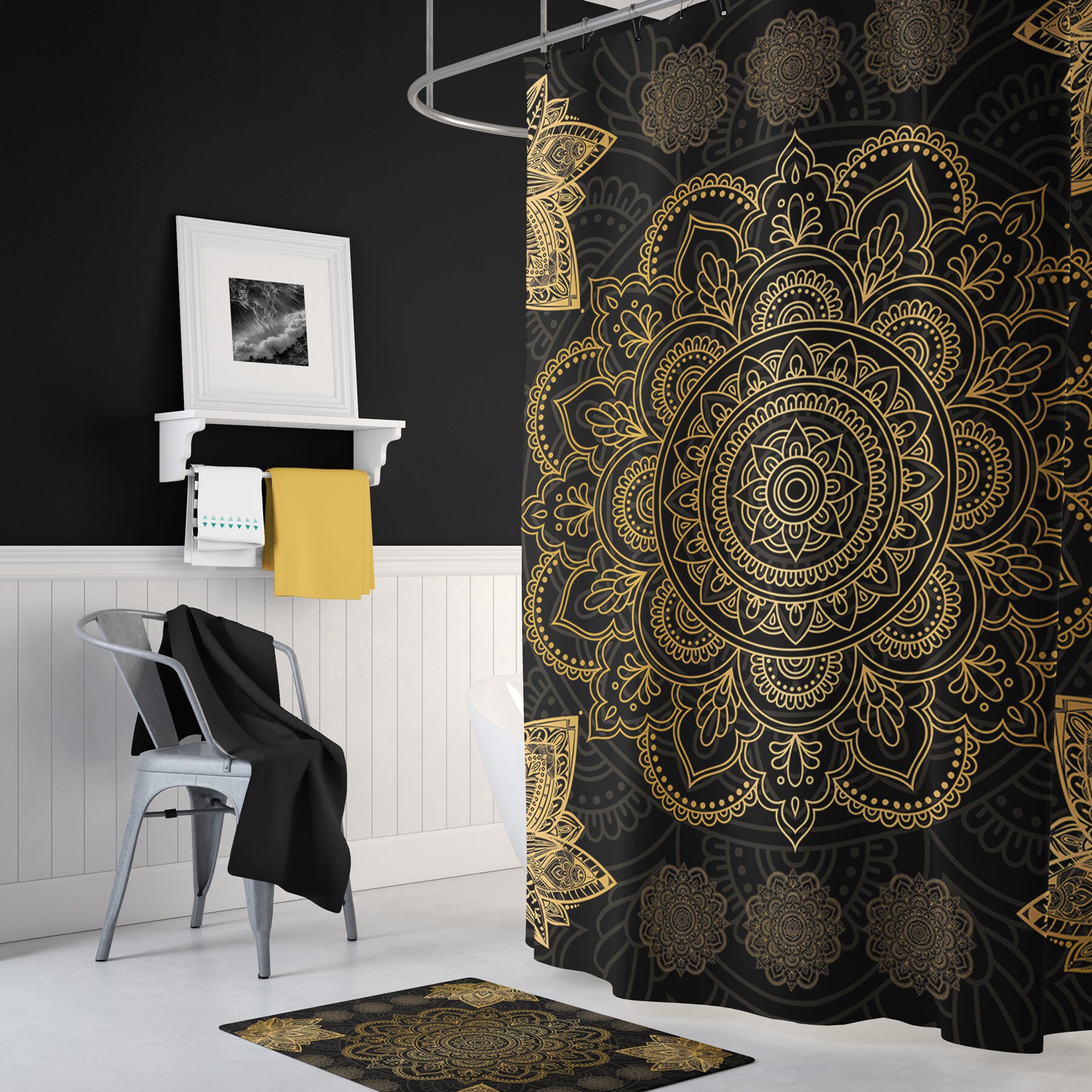 Black And Gold Bath Mat Mandala Bath Mat Bath Mat Set Boho Etsy