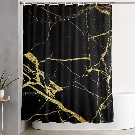 Blessliving Marble Stone Shower Curtain Gold Black Polyester