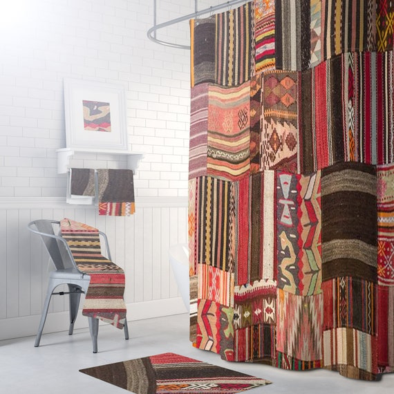 Boho Shower Curtain Bohemian Bathroom Decor Ethnic Patchwork Etsy