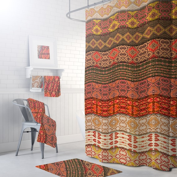 Bohemian Shower Curtain Boho Bathroom Decor Etsy
