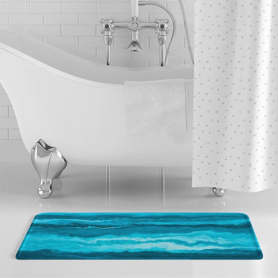 Teal Waves Bath Mat Teal Bathroom Decor Aqua Bathroom Etsy